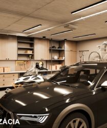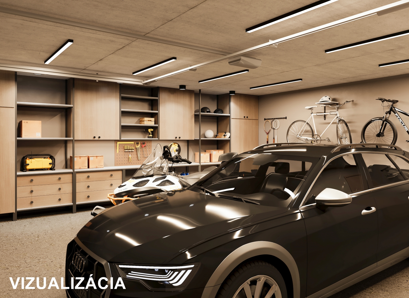 Dispozícia: 5 izieb, dominantná obývacia hala s vysokým stropom, dvojgaráž